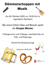lädt die Pfarrei Hl. Martin zum Dämmerschoppen ins Jugendheim, St. Johannes, Rohrbach, ein.