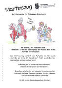 Am Sonntag, 09. November 2025 Treffpunkt: 17:00 Uhr am Parkplatz der Pizzeria Bella Italia, Austraße am Tennisplatz Der Martinsumzug verläuft vom Parkplatz am Tennispark, Austraße, zur Kirche St. Konrad. Dort findet anschließend... weiterlesen